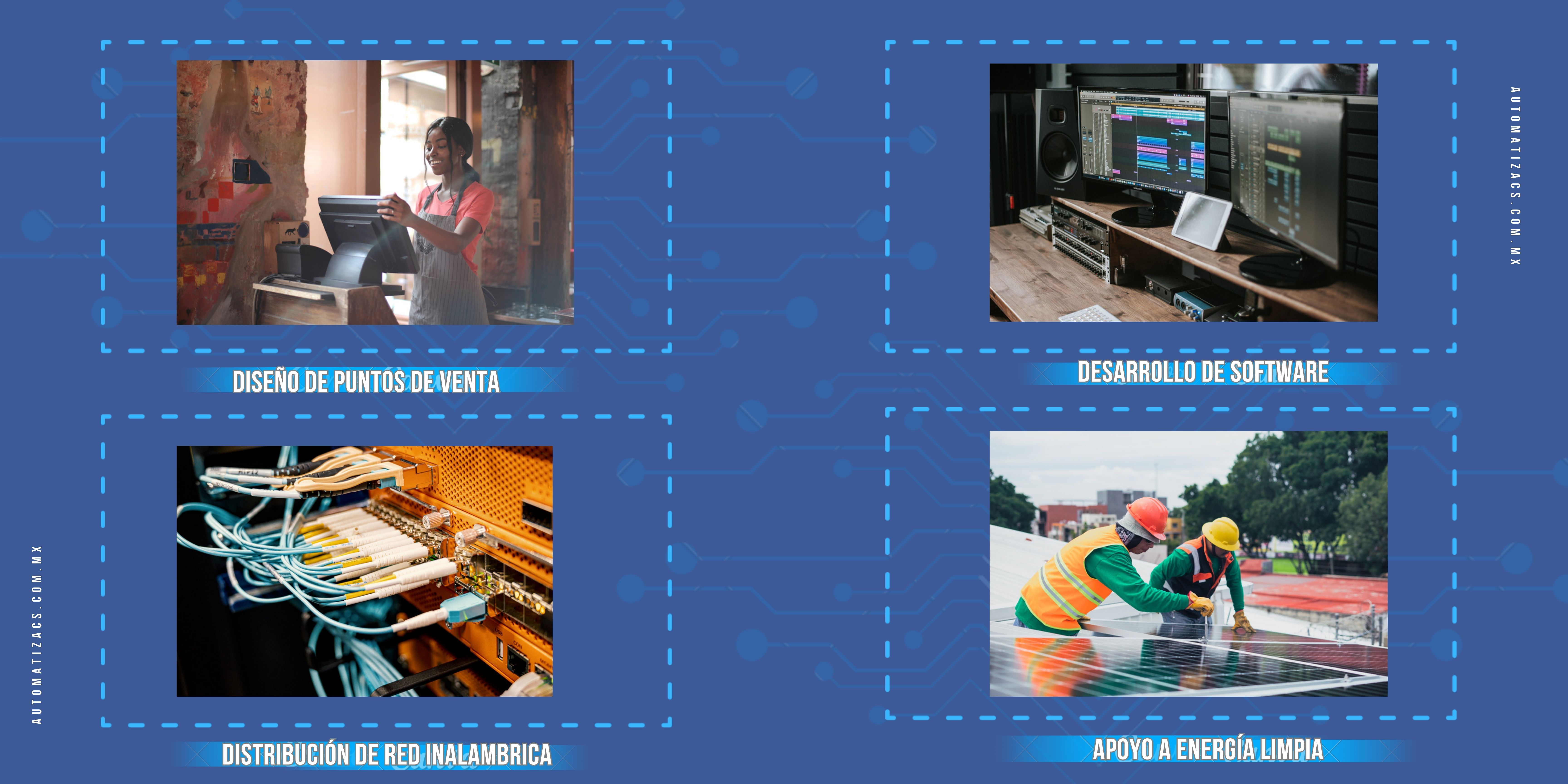 Contribuimos a la mejora continua del sector industrial y de servicios en sus procesos de logística y fabricación de productos, ofreciendo un servicio integral de automatización de óptima calidad. Esto incluye el desarrollo e implementación de software, el diseño y construcción de maquinaria para procesos, así como el diseño e instalación de sistemas eléctricos, electrónicos, neumáticos e hidráulicos, y sistemas de telecomunicaciones. Nuestro objetivo es que estos sectores puedan implementar y actualizar sus sistemas para incrementar su productividad y desempeño, adaptándose a la industria 4.0 y satisfaciendo las necesidades de sus clientes internos y externos.